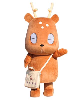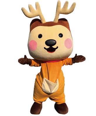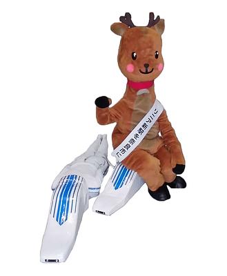 奈良市リニアファン倶楽部部員「リニー君」とリニア招き鹿「りにまね」。奈...