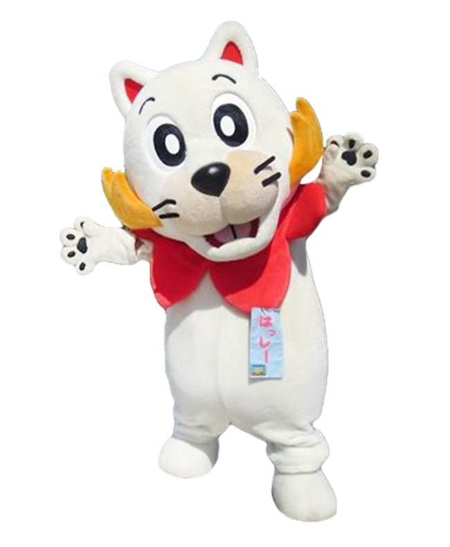 広島県産の赤いもみじの前かけと山口県産のみかん色のタテガミが特徴のはっしーは、意外とおじさん?でおいしい食べ物とお酒が大好き♪