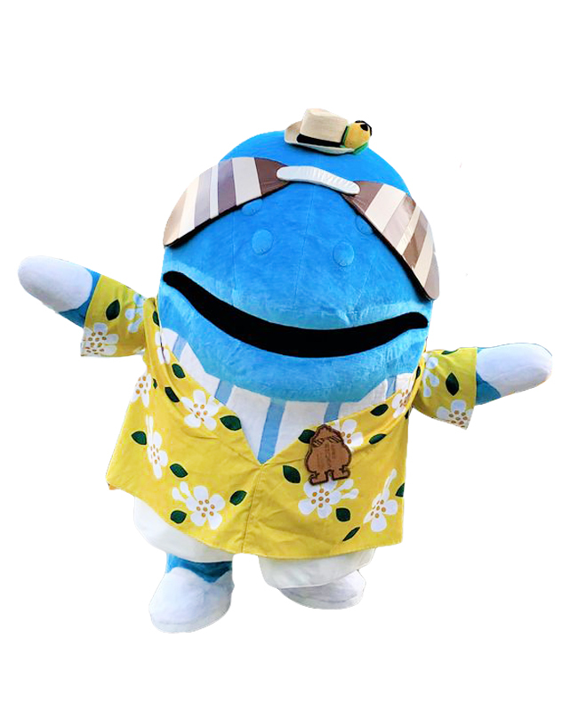 小笠原生まれ・小笠原育ちのザトウクジラ。古風な名前だが、言葉には少し英語が混ざる。小笠原の強い紫外線から目を守るためいつもサングラスをかけている。決して「かわいい目」を隠したいからではない。