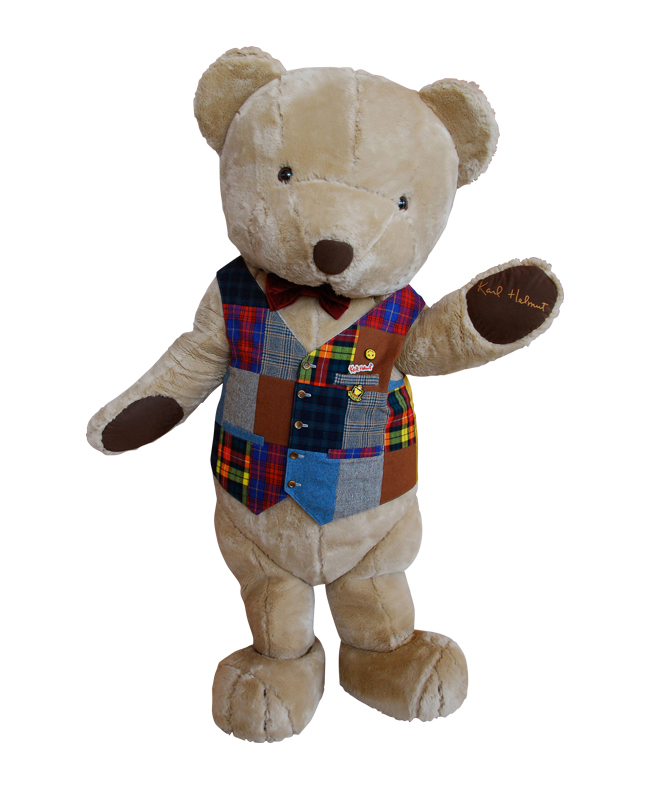 ハイ!カールです。ピンクハウスブランド『カールヘルム』の25周年に誕生したテディベア。ふわふわの毛並み、つぶらな瞳がチャームポイントだよ。さらに多くの人達とのふれあいを求め初登場です。どうぞよろしく。