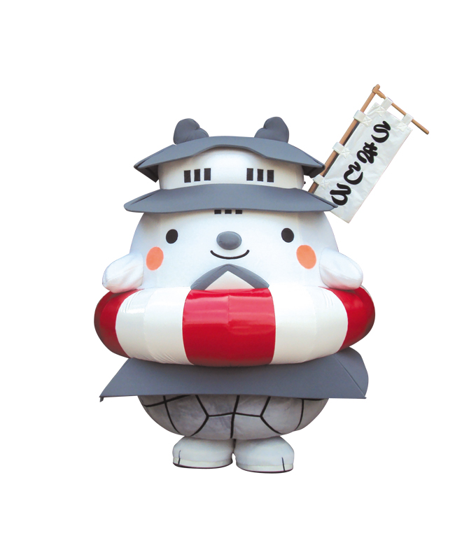 行田市の忍城をモチーフにした癒し系ゆるキャラ。沈まないように浮き輪をしたり、ちゃっかり行田の足袋を履いたりと、行田の魅力をたっぷりもったキャラクターです♪みんな応援よろしくね!