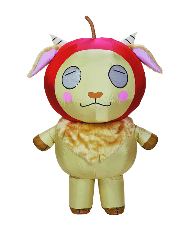 りんごのかぶり物をするほどりんご大好きなカモシカの女の子。春はりんごの花を見つめ、秋は収穫のお手伝いをする。りんご以外にも蕎麦や蜂の子など長野県産の食べ物が大好き。うれしいことがあるとすぐ万歳をする。