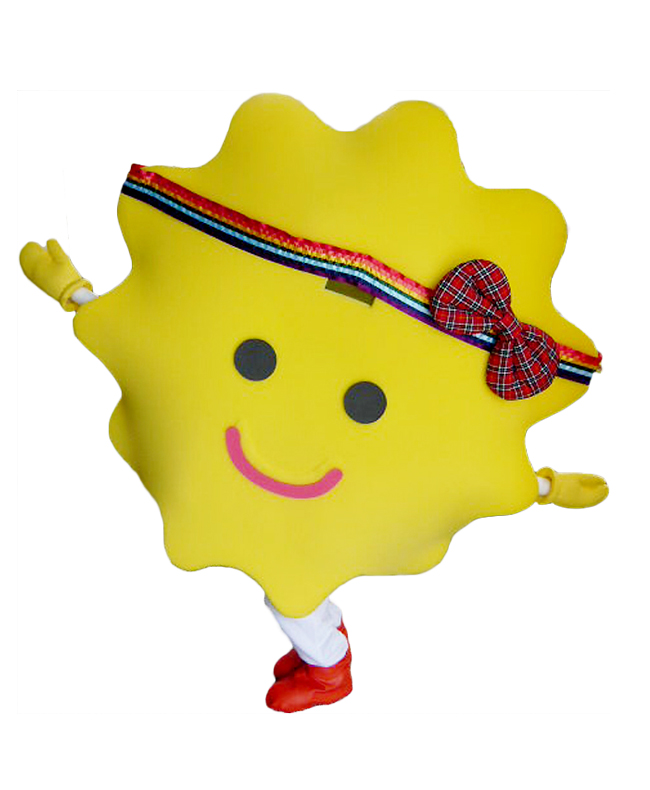 金平糖の釜のように巨大なペートン。横幅1.2mという巨体で、小さい子供さんが泣き出すことも!?レインボーの鉢巻とオレンジのブーツが80年代風のアイドルを思わせ、どこか懐かしい金平糖を感じさせます。。