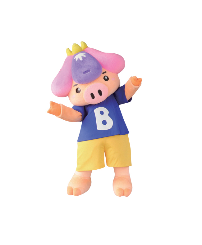 僕、しょうぶー!市内の観光地での食べ歩きが大好きだぶー♪頭の花しょうぶがチャームポイントなんだぶー。町に元気がなくなると頭の花しょうぶがしおれてくるから、ずっと元気でいてほしいんだぶー!