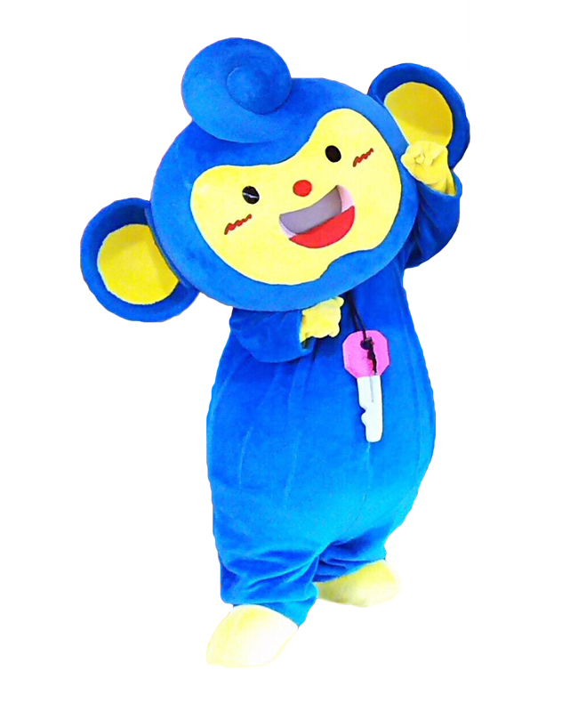 ロックモンキーのロックは「鍵」、キーは文字通り「鍵」で、防犯の基本となる「鍵かけ」をイメージしたキャラクターです。ボランティア活動、防犯パトロール、自転車の鍵かけ、防犯教室に参加するキャラクターです。