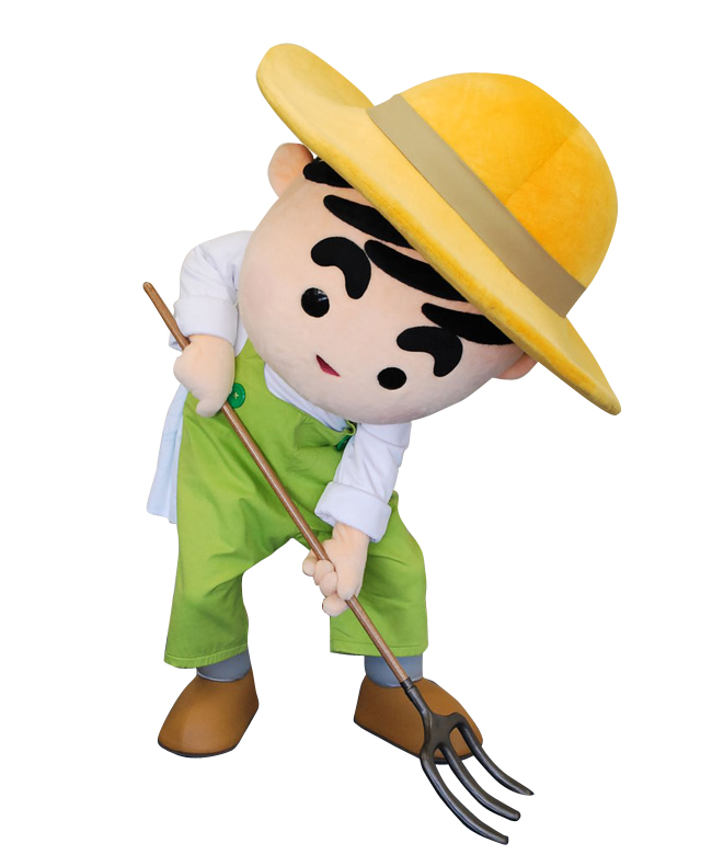 太陽の光をいっぱい浴びた野菜と果物、お肉が大好きで農畜産物で蓄えたパワーをミネラルパワーとしてみんなに元気を与えている。