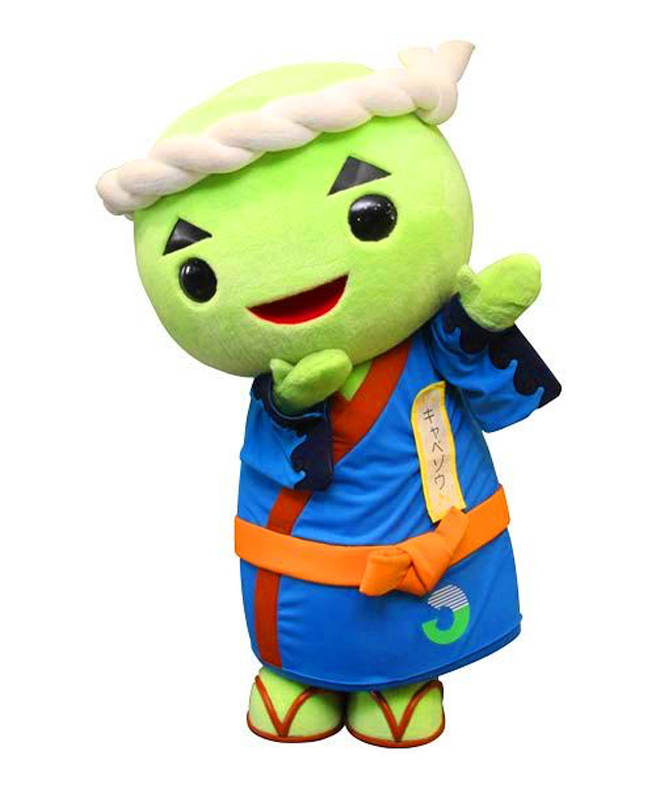 キャベゾウは、渥美半島・田原市の魅力を市内外に宣伝する観光大使に任命されています。 農業日本一のまち・田原市の太陽をいっぱい浴びて育った、甘味いっぱいのシャキシャキなキャベツから生まれた男の子。