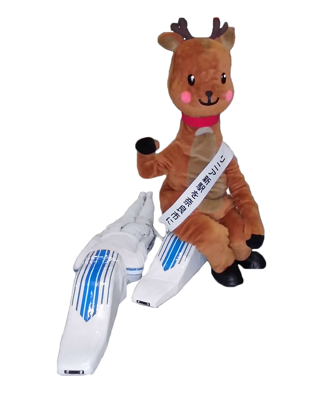 奈良市リニアファン倶楽部部員「リニー君」とリニア招き鹿「りにまね」。奈良市リニアファン倶楽部部員も6000人を超え、奈良市リニア新駅誘致実現に向け、ますます勢いにのる二人がグランプリめざし疾走します!