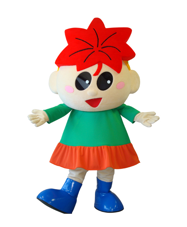 明るく元気いっぱいな女の子の妖精です。箕輪町の観光PRなどあらゆる分野で活躍しています。髪とスカートの赤はもみじを、服の緑は