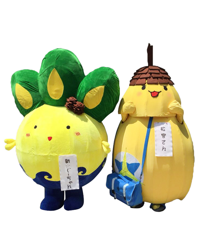 新宮高校のキャラクターの新☆ぐーちゃんと理数科キャラクターの松宮さんです。文化祭のクラス企画で生徒が手作りで作りました。(予算5万×2体)新宮浜の波や松がモチーフです。ぜひ投票をお願いします。