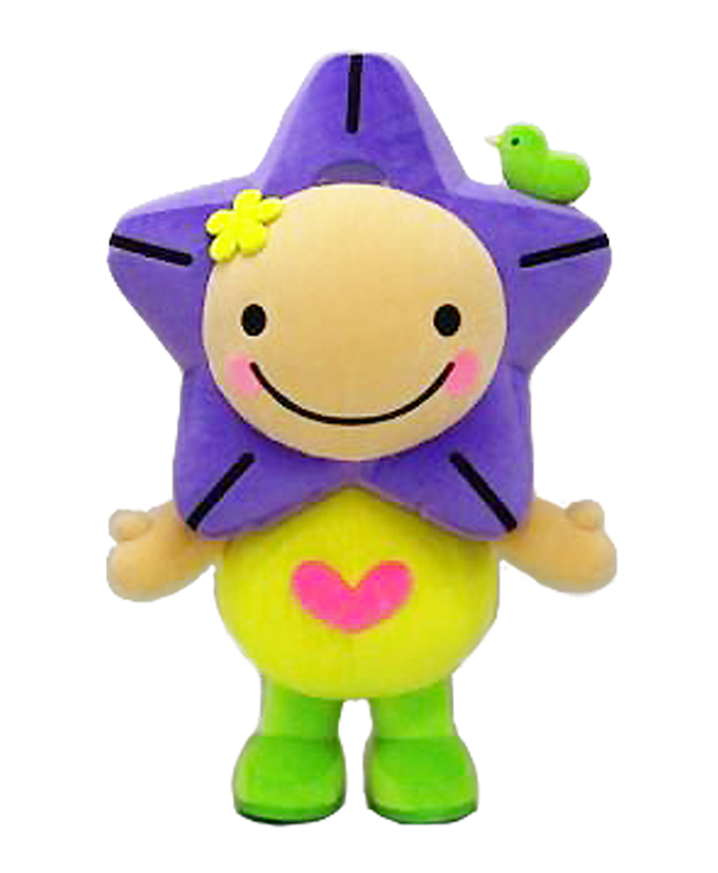 僕、しょうぶー!市内の観光地での食べ歩きが大好きだぶー♪頭の花しょ...