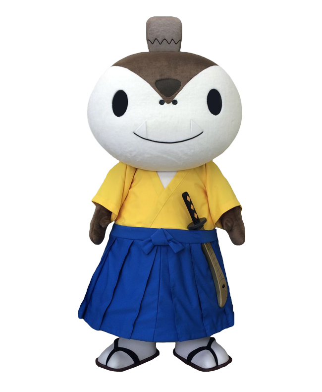 城下町のイメージに合うよう武士姿で、ちょんまげ、刀も鱧のデザインにしています。