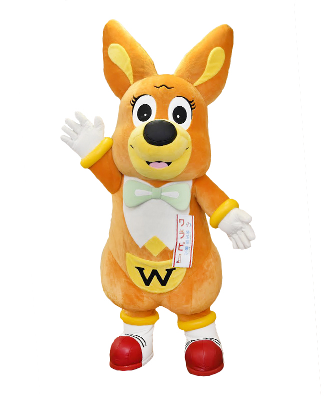 地元蕨(わらび)の人気者「ワラビー」。市制施行30周年(平成元年)記念に誕生して以来、日本一小さい蕨市(5.11ヘイホウキロメートル)内を中心に活動していましたが、ついに全国デビュー!これを機会に全国の皆さんにワラビーを知ってもらえるよう頑張ります!みんな応援してね♪