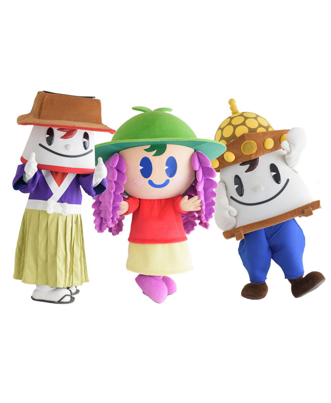つし丸は津島神社、ふじかは藤棚、マッキーはユネスコ登録された尾張津島天王祭の巻わら舟をイメージ。