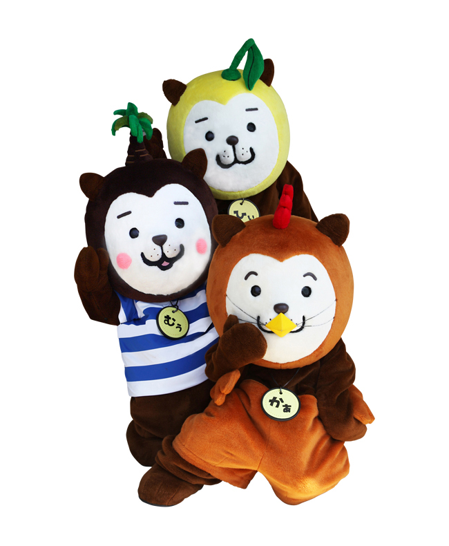 宮崎で見つかった新種のわんこで、県のシンボルキャラクター。宮崎ゆかりの「かぶりもの」をかぶり、3匹息の合ったダンスでテッペン目指します!facebookもやってるよ。