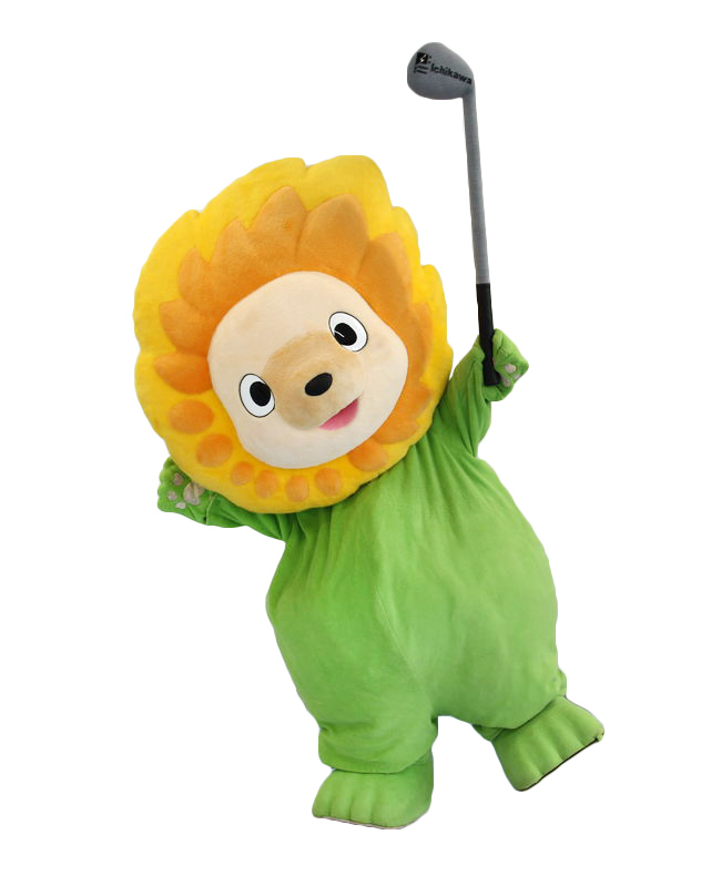 市川町の町花ひまわりのように元気いっぱいの「ひまりん」だよ!市川町と同じハートの形をしたプニプニの肉球が特徴で、今回は新しく手に入れたゴルフアイアンを持って市川町をPRするよ!応援よろしくね♪