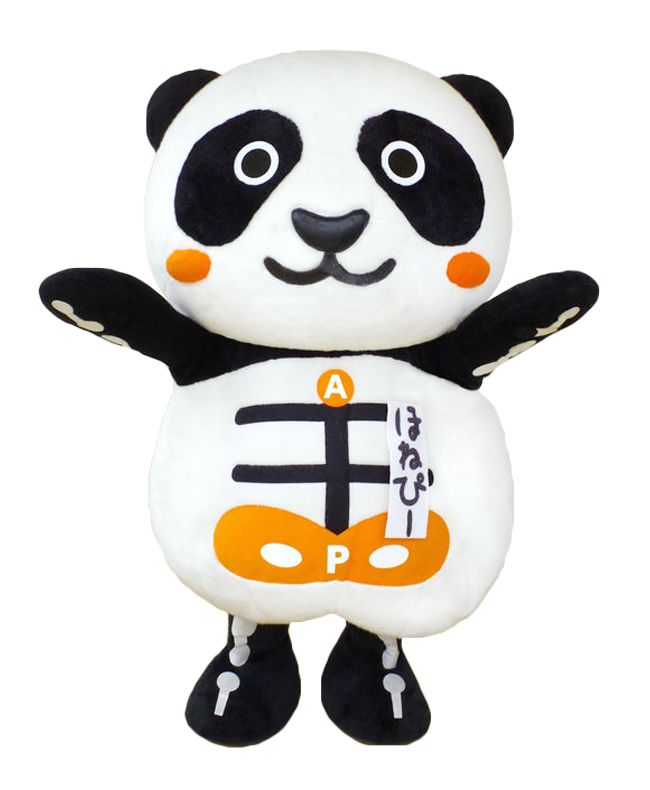 みんな猫背のパンダ界で珍しく、ほねぴーはシンメトリー。それは骨盤が整っているからなんだ!カラダがゆがんでいる人たちを助けるため、整体サロン「カラダファクトリー」の店頭にいるよ。