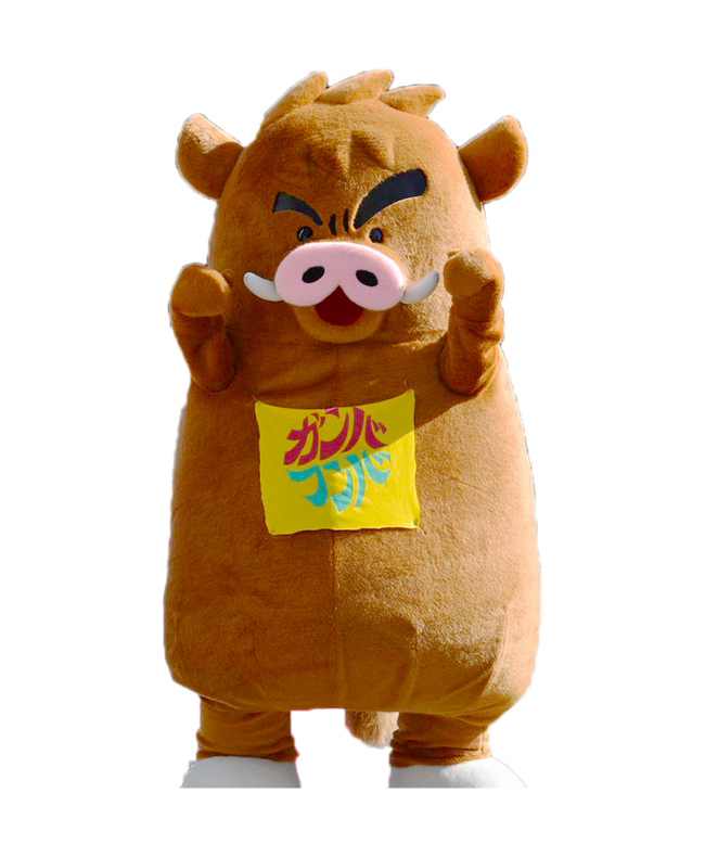 大阪のランニングショップ RUN-WALK Styleゆるキャラ イノシシの ガンバフンバくんだゾ!マラソン大会で応援するゾ。ガンバフンバとは、 頑張って踏ん張っての略語。頑張っている人の応援するゾ!
