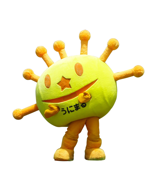 奥尻島のマスコットキャラクター 「 うにまる 」 くんが、今年も5月1日から観光客の皆様を お出迎え・お見送りをしております。