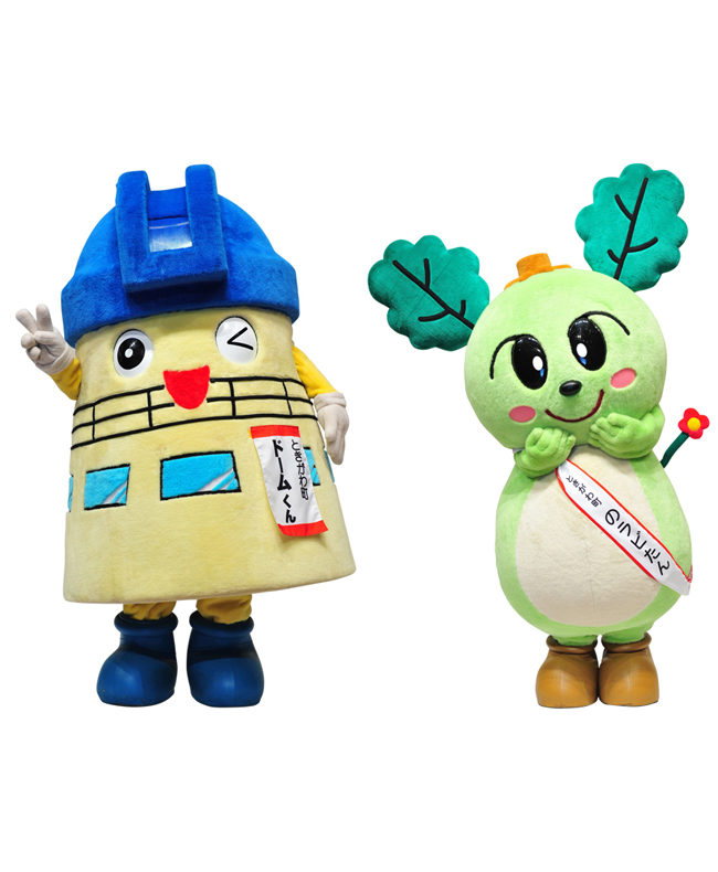 ドームくんはときがわ町のランドマーク、堂平天文台「星と緑の創造センター」の妖精。夜空にかがやく星や宇宙のことが大好きで、一晩中大きな望遠鏡をのぞいていることもあるよ。のラビたんはときがわ町の新鮮野菜を販売する「ふれあいの里たまがわ」に住んでいる、顔は青なす、耳はのらぼう菜のウサギ型の妖精。野菜が大好きで、しっぽのお花が揺れる具合で野菜の鮮度がわかるんだ。ときがわ町の10キャラクターを代表して今年もゆるキャラグランプリに参戦!