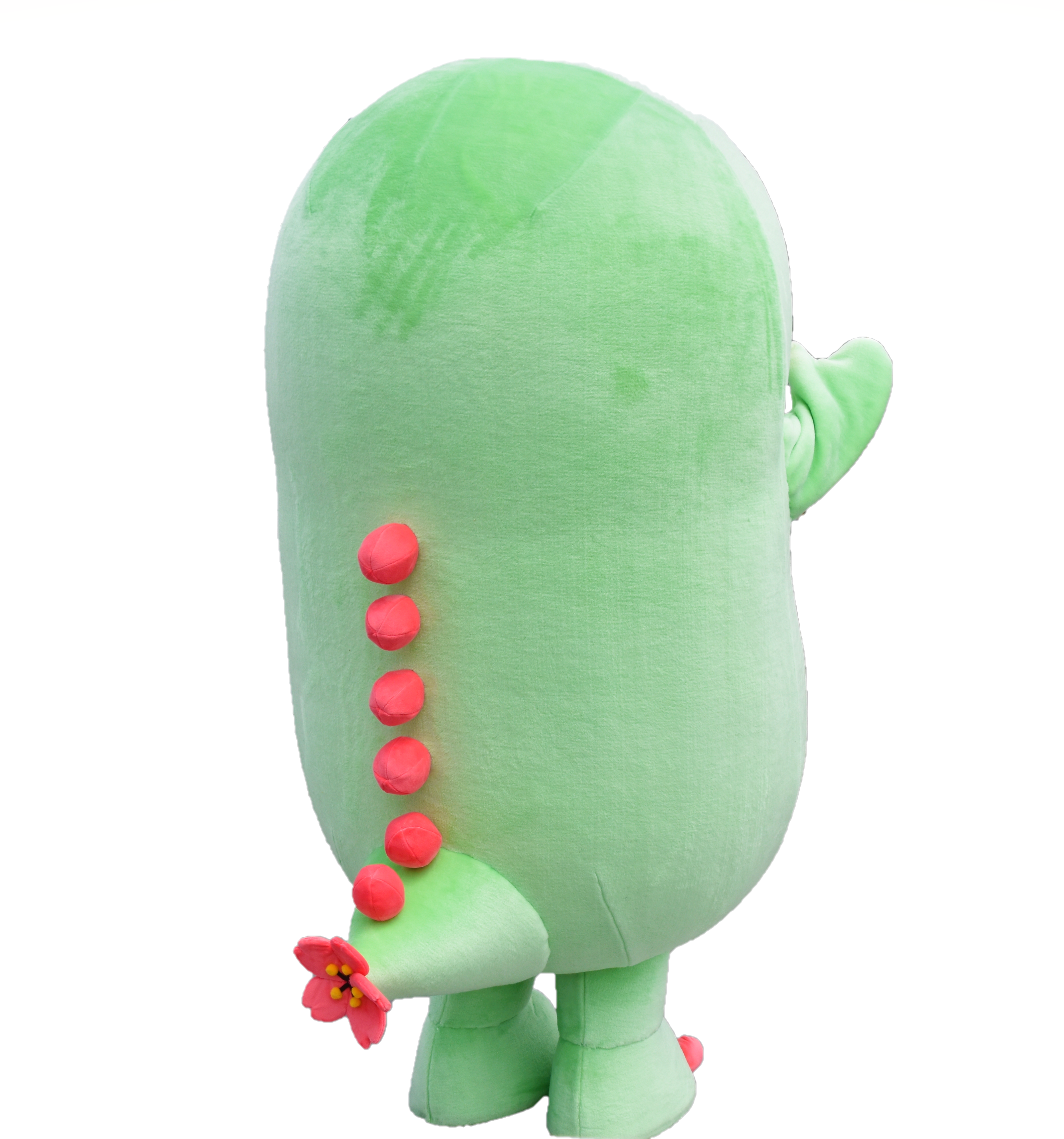 顔は「レンコン」、ちょんまげは「しいたけ」、胸には「紅花」の家紋、...