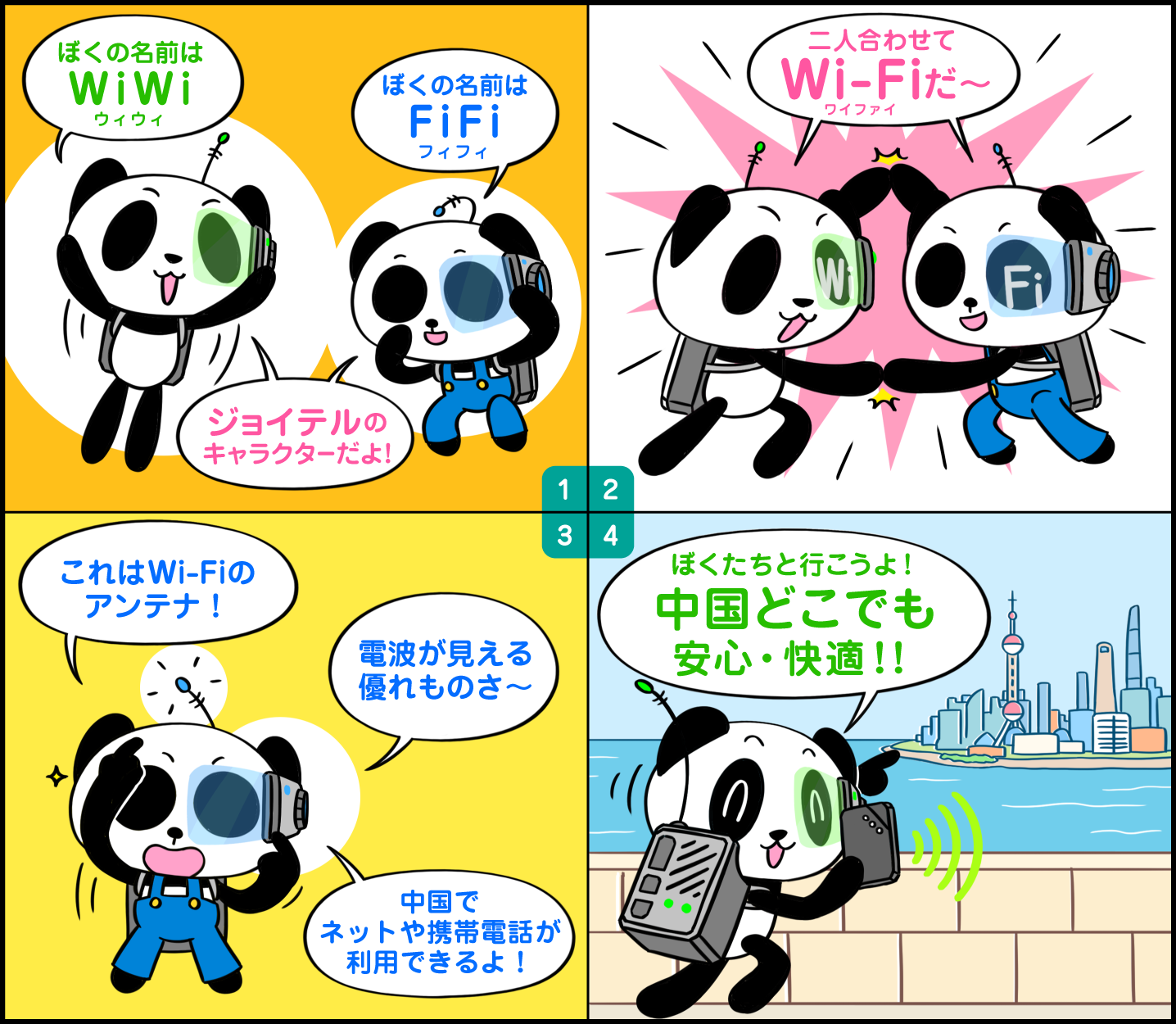 | 名称の由来 | 僕らの名前の由来はWiWi(ウィウィ)とFiFi(フィフィ)。パンダらしい名前ということからWiWi(ウィウィ)とFiFi(フィフィ)と名付けました。