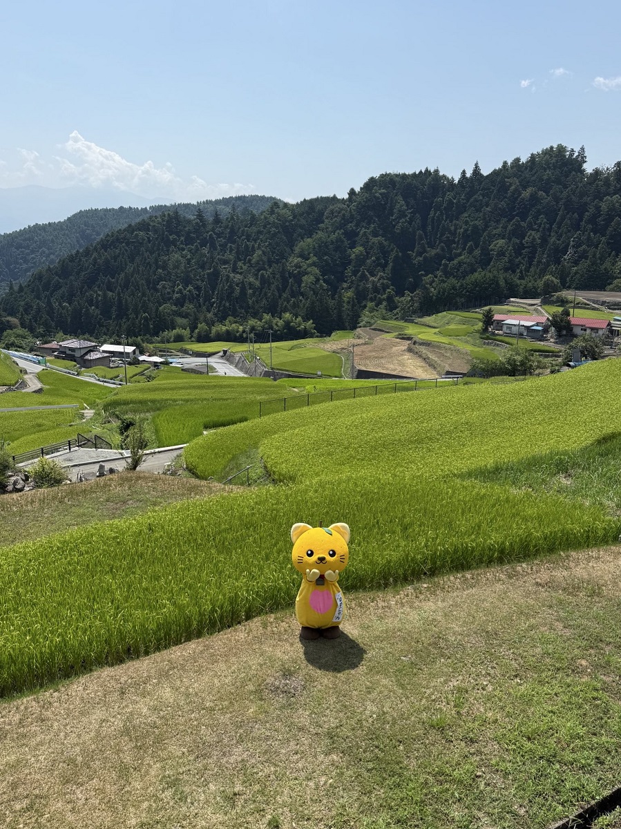 お腹にピンク色の桃のマークをつけ、日本一の桃源郷「笛吹市」をPR。...