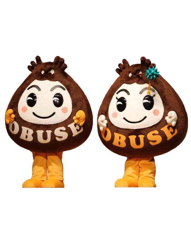 小布施町の特産の栗がモチーフのおぶせくりちゃんとおぶせまろんちゃん。二栗はツイッターで小布施を応援してくれるつぶやきにお礼をしたり、週末は全国各地にお出かけして町をPRしています。
