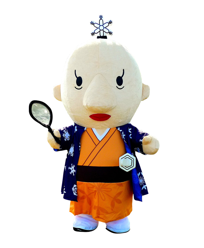 日本で初めて雪の結晶を観察し、雪の殿様として知られる土井利位が遠い先祖の現代のお殿様。まげは雪の結晶!小さなモノも見落とすまいと虫眼鏡片手に市内を探索し、グルメを見つけては食べているので少し太り気味。