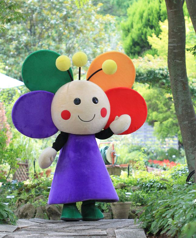 皆様に親しまれ、花とみどりいっぱいの街づくりを提案していく植物園をイメージしたもので、花いっぱいの街づくりをすすめる妖精として親しまれています。