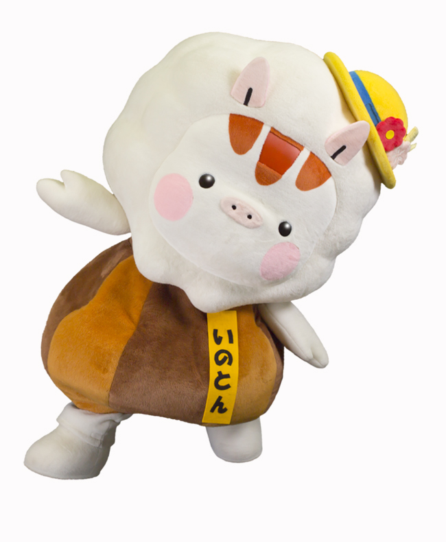 皿ヶ嶺の山に住む、自然の守り神である白いイノシシで、山の神様の化身と言われています。麦わら帽子とかぼちゃの服が大好きなお洒落さんです。