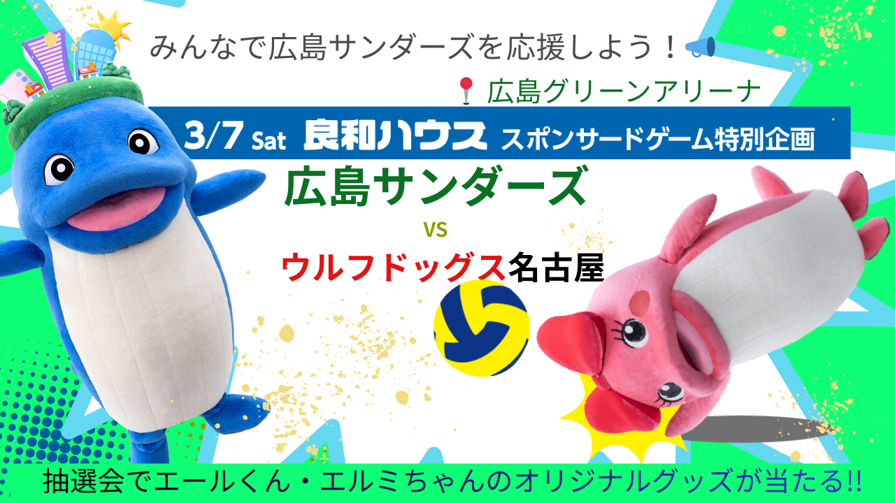 🏐出没情報🏠3/7㈯良和ハウス スポンサードゲーム 広島サンダーズ VS ウルフドッグス名古屋戦