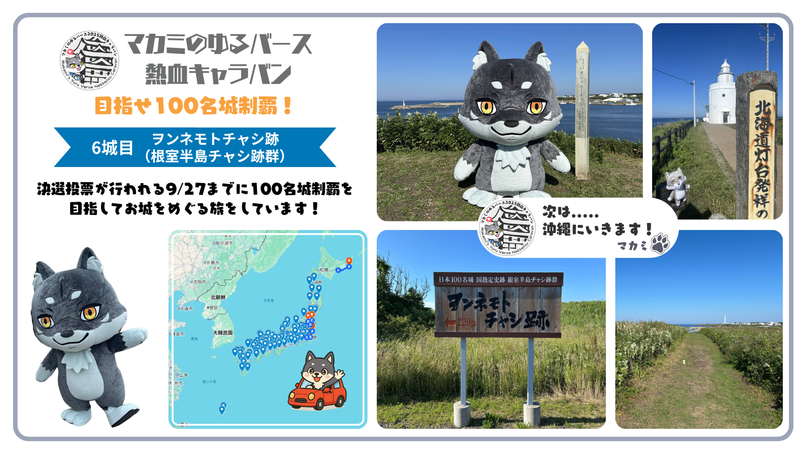 マカミの熱血キャラバン🚗 7月22日(火)は、日本100名城の中で最東端に位置する、「根室半島チャシ跡群」を訪れました 🐾