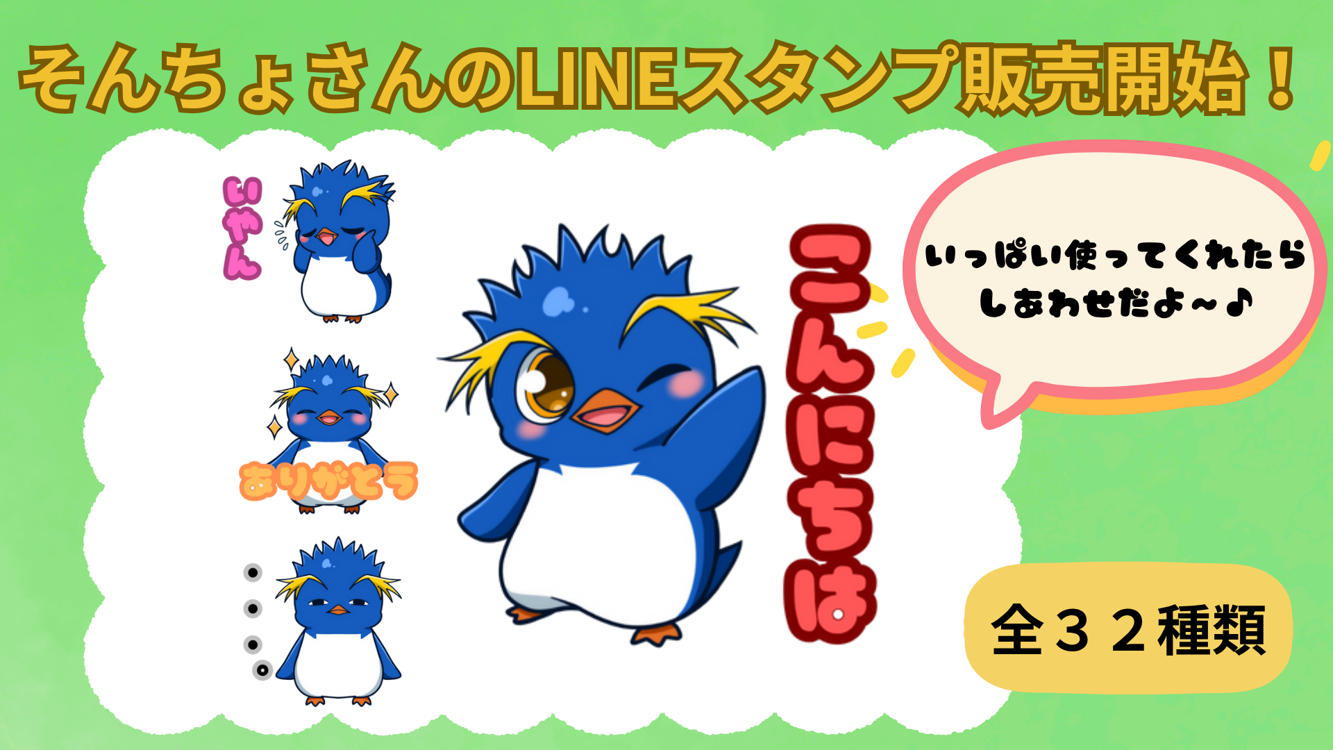 メディア そんちょさん | 株式会社ペンギン村 そんちょさんスタンプ使ってね 2025/08/08 16:20 こんにちは!ペンギン村のそんちょさんです(^^)/LINEスタンプができたの!是非ぜひ使ってね!ペンギン村のそんちょさん - LINE スタンプ | LINE STORE