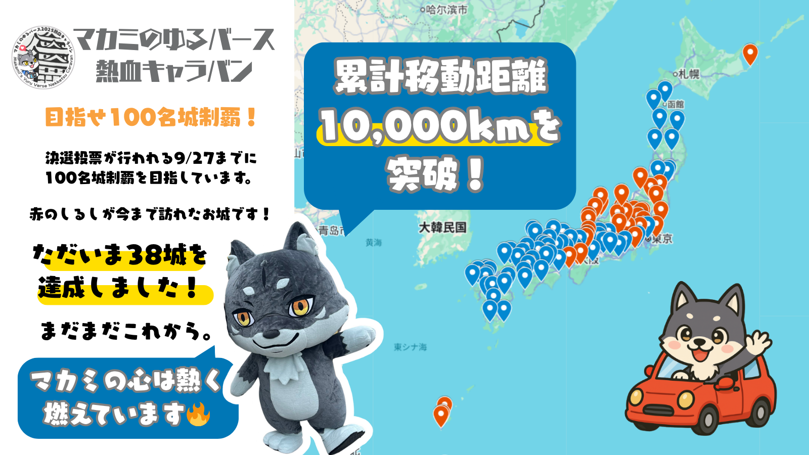 38城目を達成&累計移動距離10,000kmを突破しました!