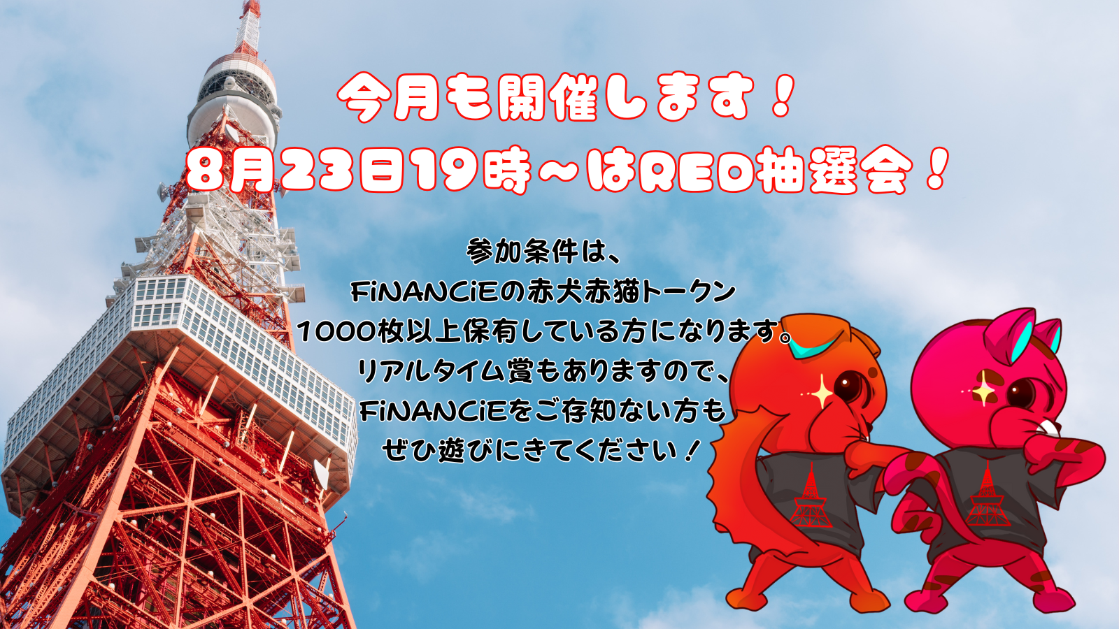 🐱 もみじ「FiNANCiE赤犬赤猫トークンを1000枚以上持ってたら参加できるにゃ!CTHはいらないにゃ」
