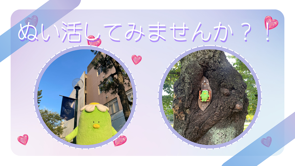 相模女子大学内で『ぬい活』してきたがっぱ。