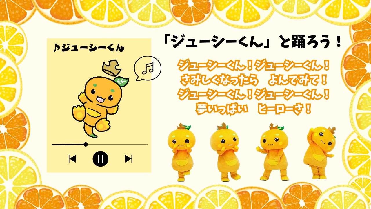 「ジューシーくん」のテーマソングとダンスがあるので、ぜひ歌って踊ってみてください✨