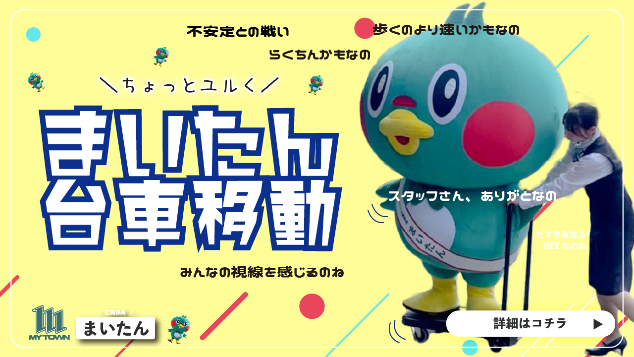 メディア まいたん | マイタウン 【まいたん台車移動】歩くより速いのね~🐤✨キリッ 2025/09/01 09:13 暑い…焼き鳥になりそう…。そんな「まいたん」を見かねたスタッフさんが、台車で運んでくれたのね!🐤✨キリッゆる~移動をぜひ見てみてね!📹🐤✨▼動画はこちら!まいたん台車に乗る!