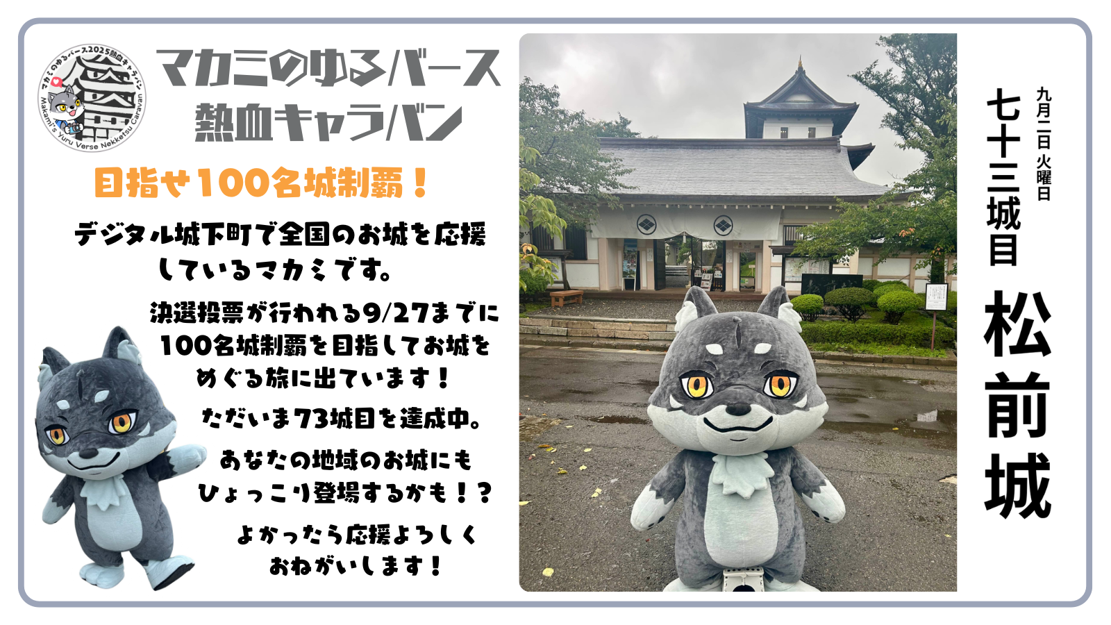 73城目は松前城を訪れることができました🏯!マカミは今北海道にいます🐺✨