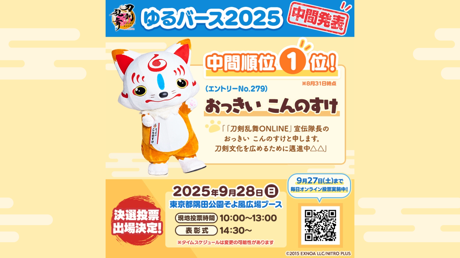 「ゆるバース2025」に出場中のおっきい こんのすけは中間順位1位となりました!