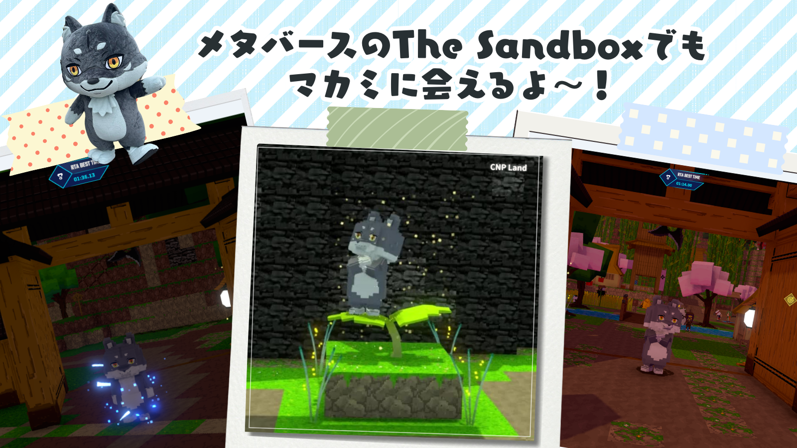The Sandbox(サンドボックス)というメタバースにある「CNP Land」という場所でマカミに会うことができるよ~🎶