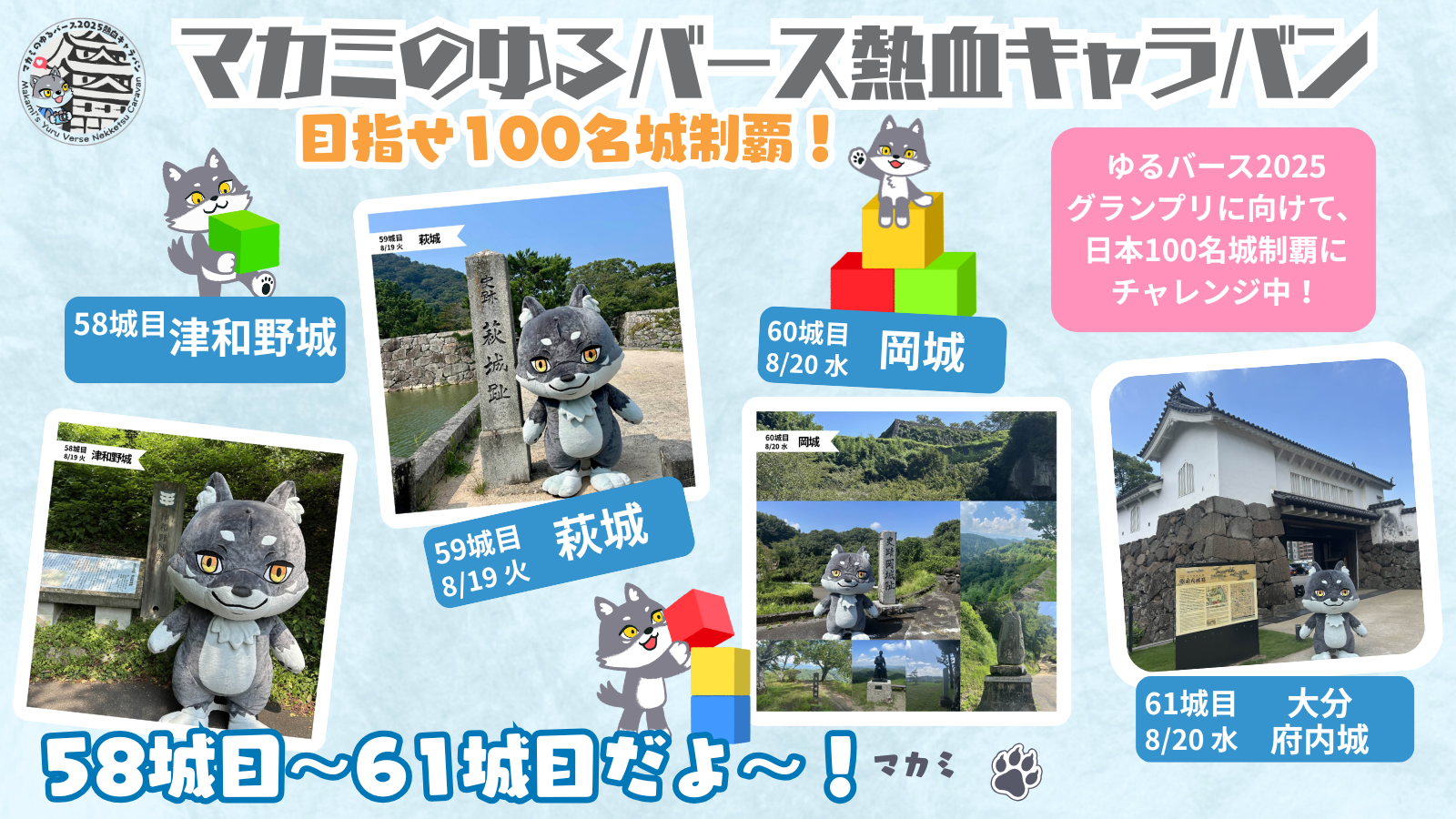 マカミは現在ゆるバース熱血キャラバンにチャレンジ中!🐺決戦投票の9/27(土)までに日本100名城制を目指しています🏯🔥