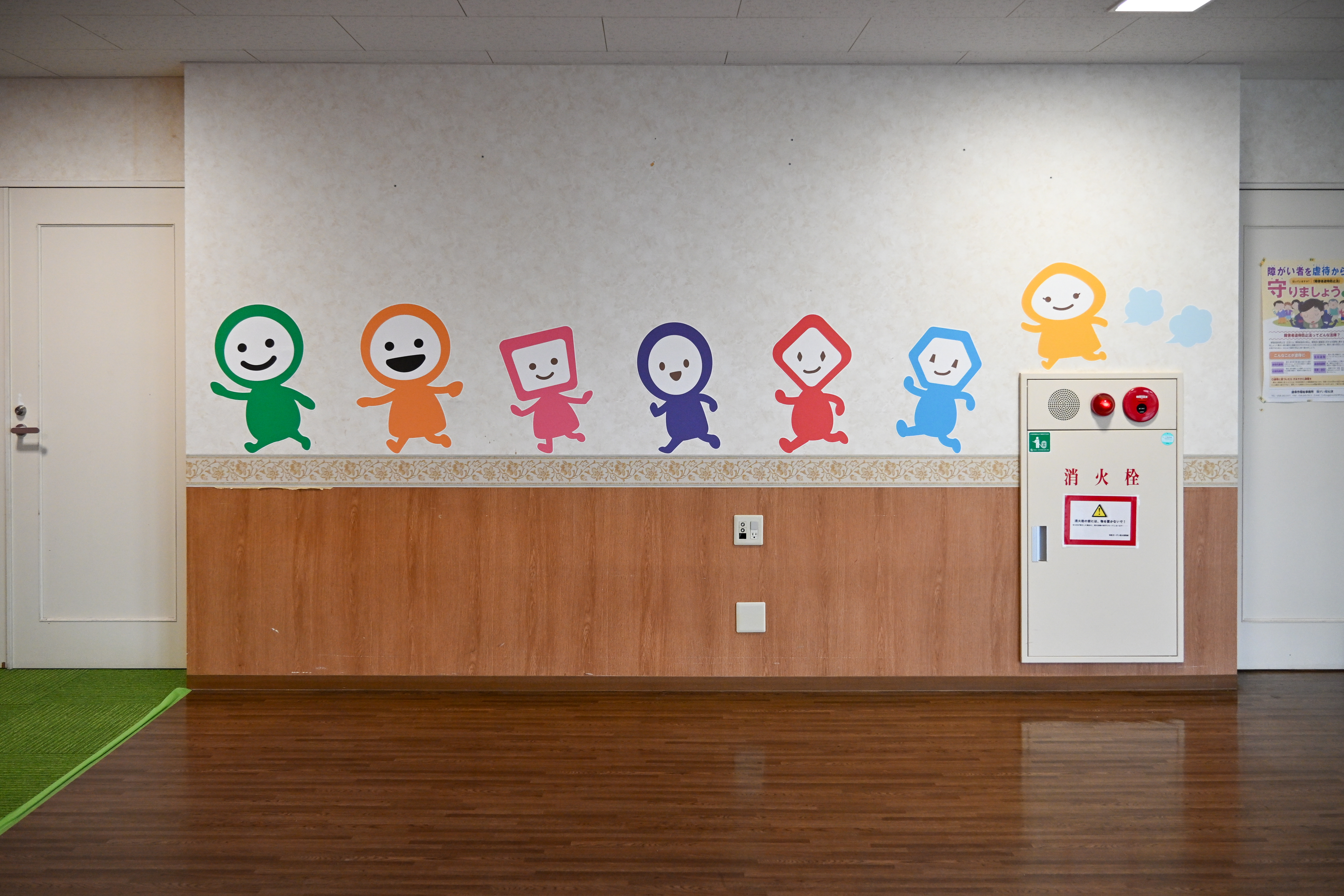 山田病院の別館、小児リハビリテーションと和光会保育園バンビ、リトル☆スター寺田キッズ&ジュニアの壁に、なごみとひかる、そしてタヨウセイのなかまたちが登場したよ!