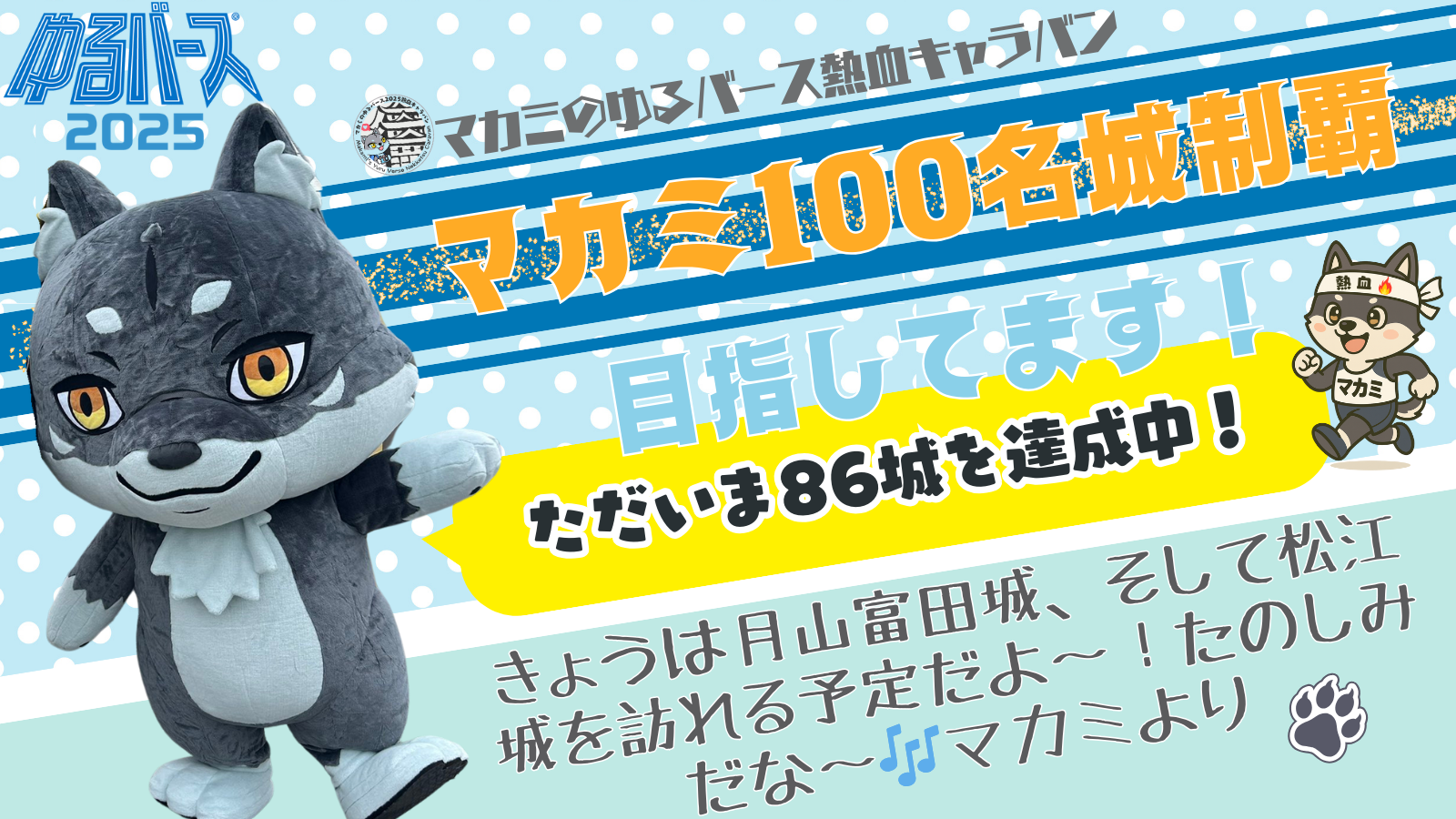 マカミのゆるバース熱血キャラバン🔥ただいま86城を達成中🏯✨まだまだいくよ~🐺🎶