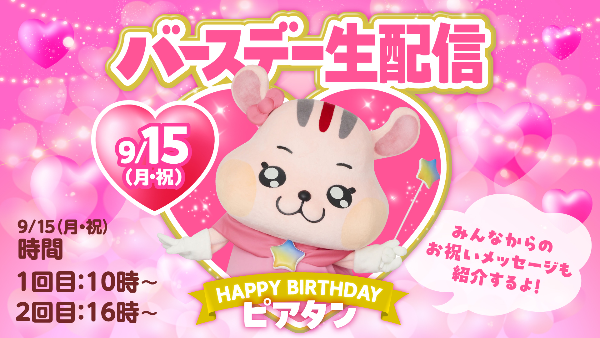 9/15(月祝)にピアタンのお誕生日生配信が開催決定!🎉