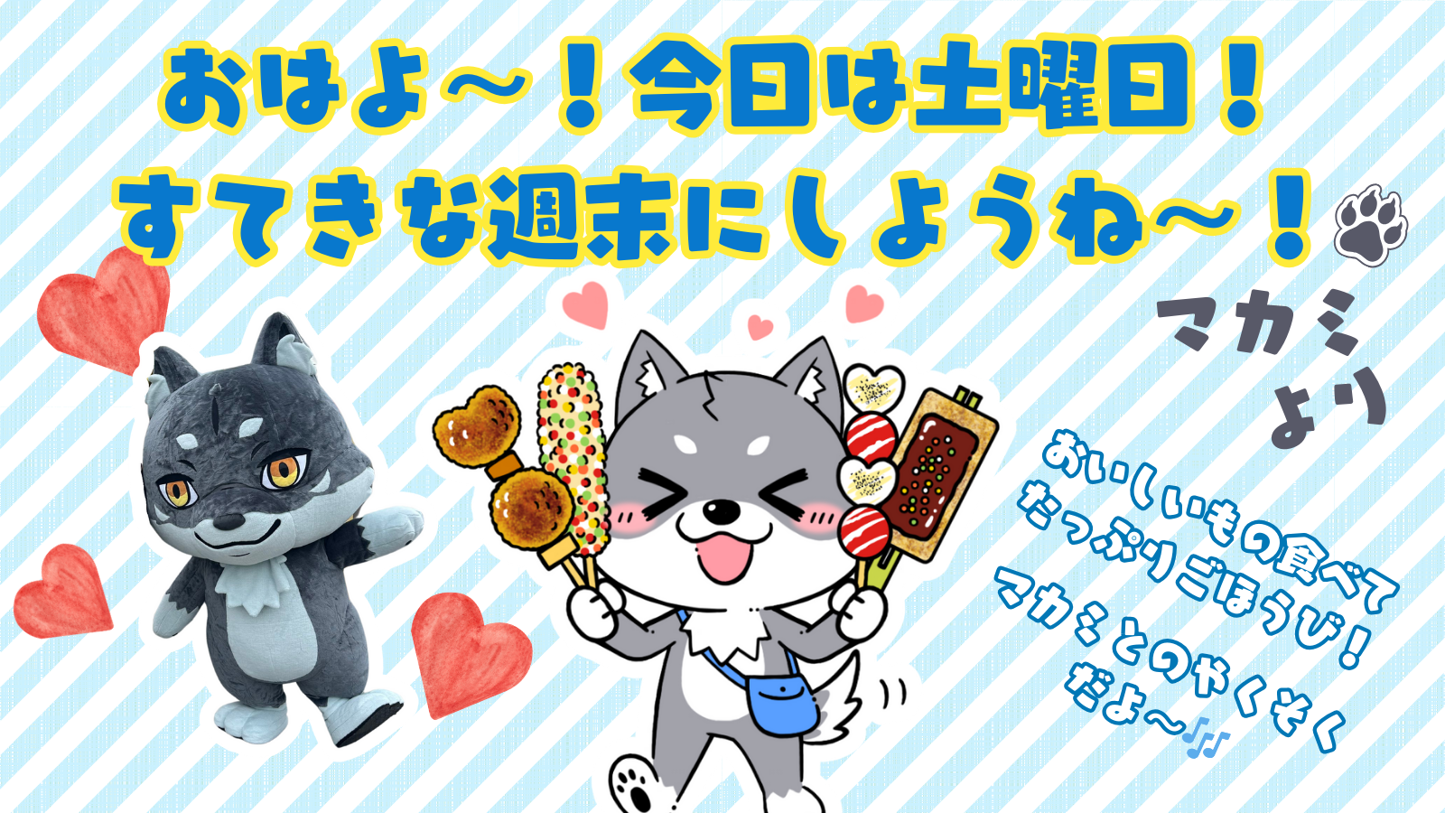 おはよ~!🌈土曜日がやってきました🎶みんなは週末なにするの?たくさんおいしいもの食べてリラックスしてね~🐺✨