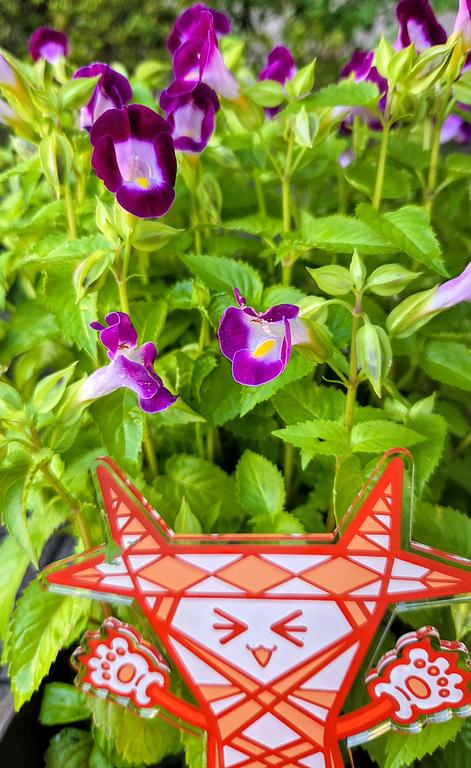 鉄塔アイドル~鉄塔鉄美~マンゴーが本社のプランターのトレニア(夏すみれ)を愛でています。