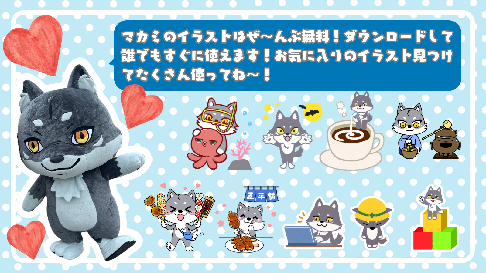 マカミのイラストはすごく便利🐺🎶誰でも無料で登録も必要ないよ~✨ダウンロードしてすぐに使えます🎉ぜひお気に入りを見つけてね🌟