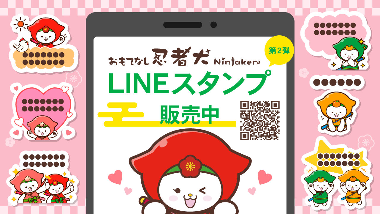 和歌山城の人気キャラクター「おもてなし忍者犬・梅ちゃん」とその仲間たちのLINEスタンプ第二弾が販売中🐾✨